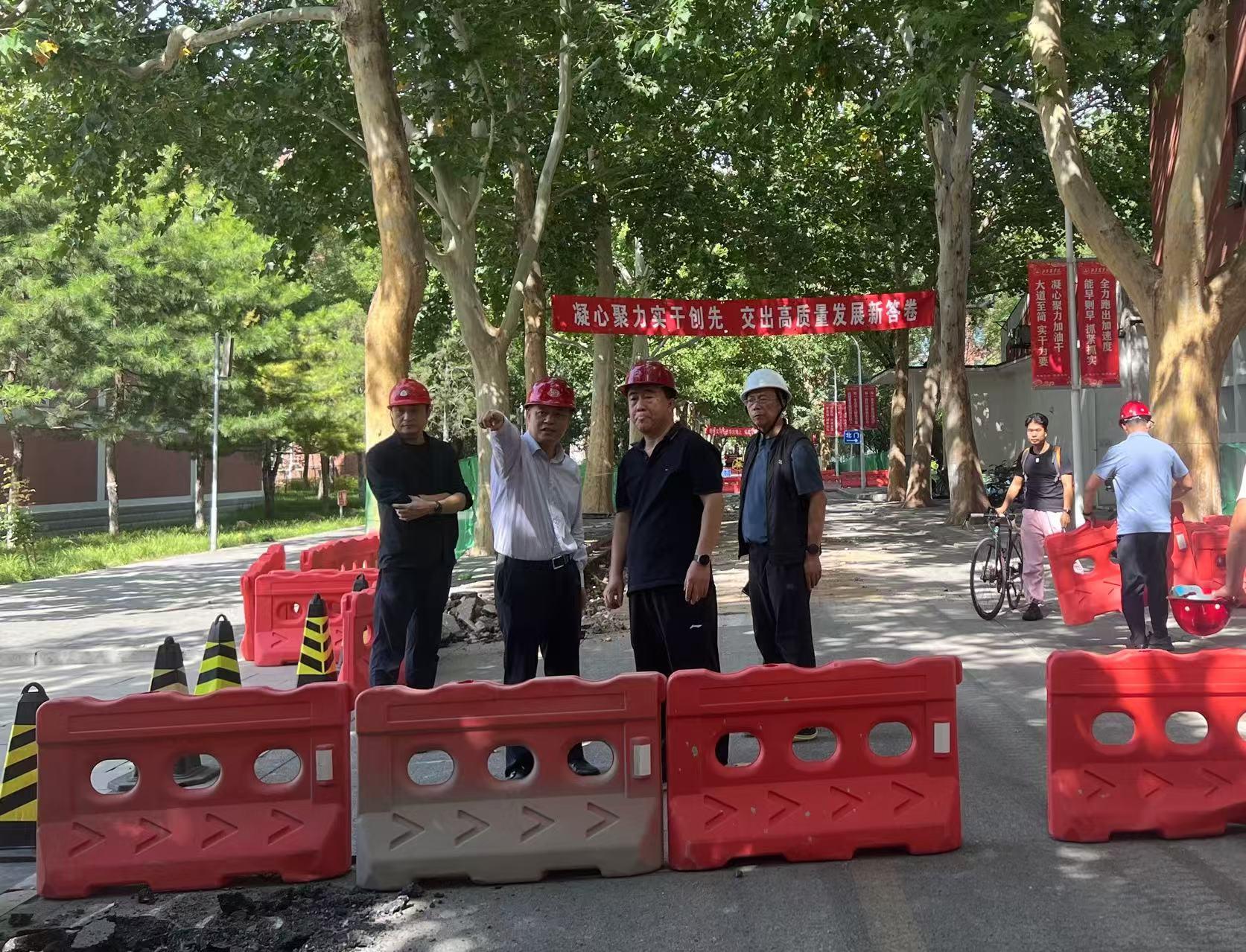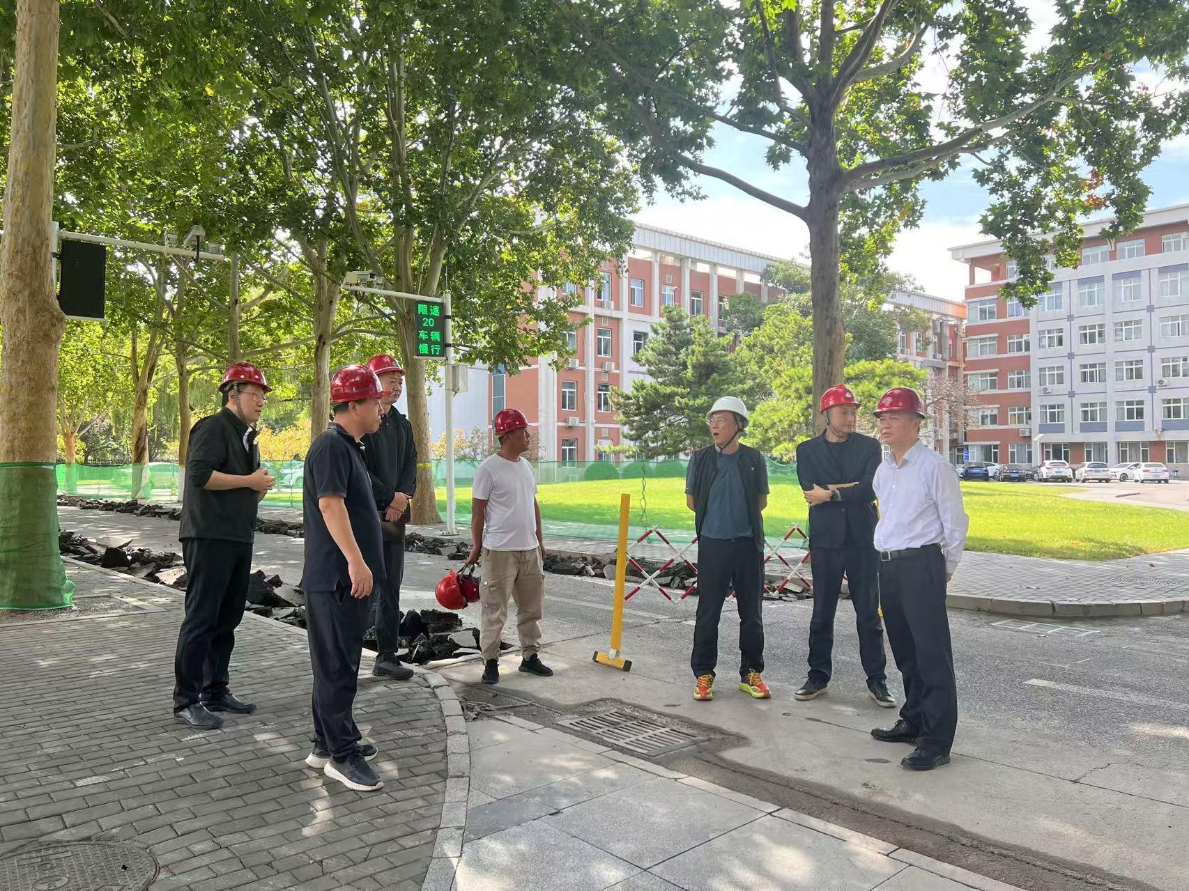 9月29日,国庆、中秋双节来临之际,党委常委副院长张劲柏带领后勤基建处、安全稳定工作处等部门负责人,开展安全专项检查。校领导深入施工一线排查隐患,现场指导安全措施升级,强调以“最高标准、最严要求”保障施工安全与师生通行安全。