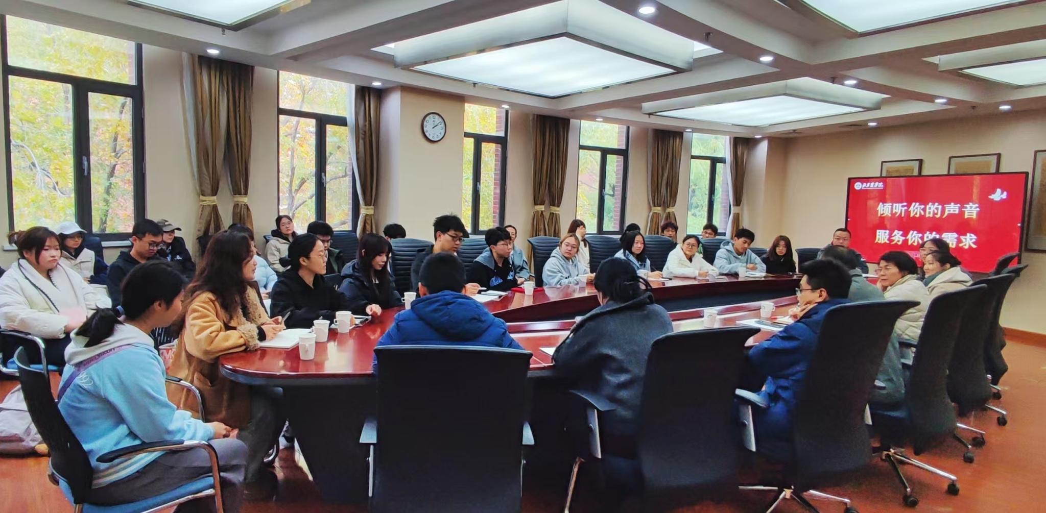 为深入了解学生在校生活需求,不断提升服务保障水平,11月5日下午,后勤基建处与校医院联合举办“倾听你的声音 服务你的需求”学生代表座谈会,座谈会由后勤基建处公寓管理服务中心牵头,饮食管理服务中心、物业管理服务中心、修缮管理服务中心、能源动力保障中心等多科室参与,与来自生物与资源环境学院的学生代表们进行了面对面交流。