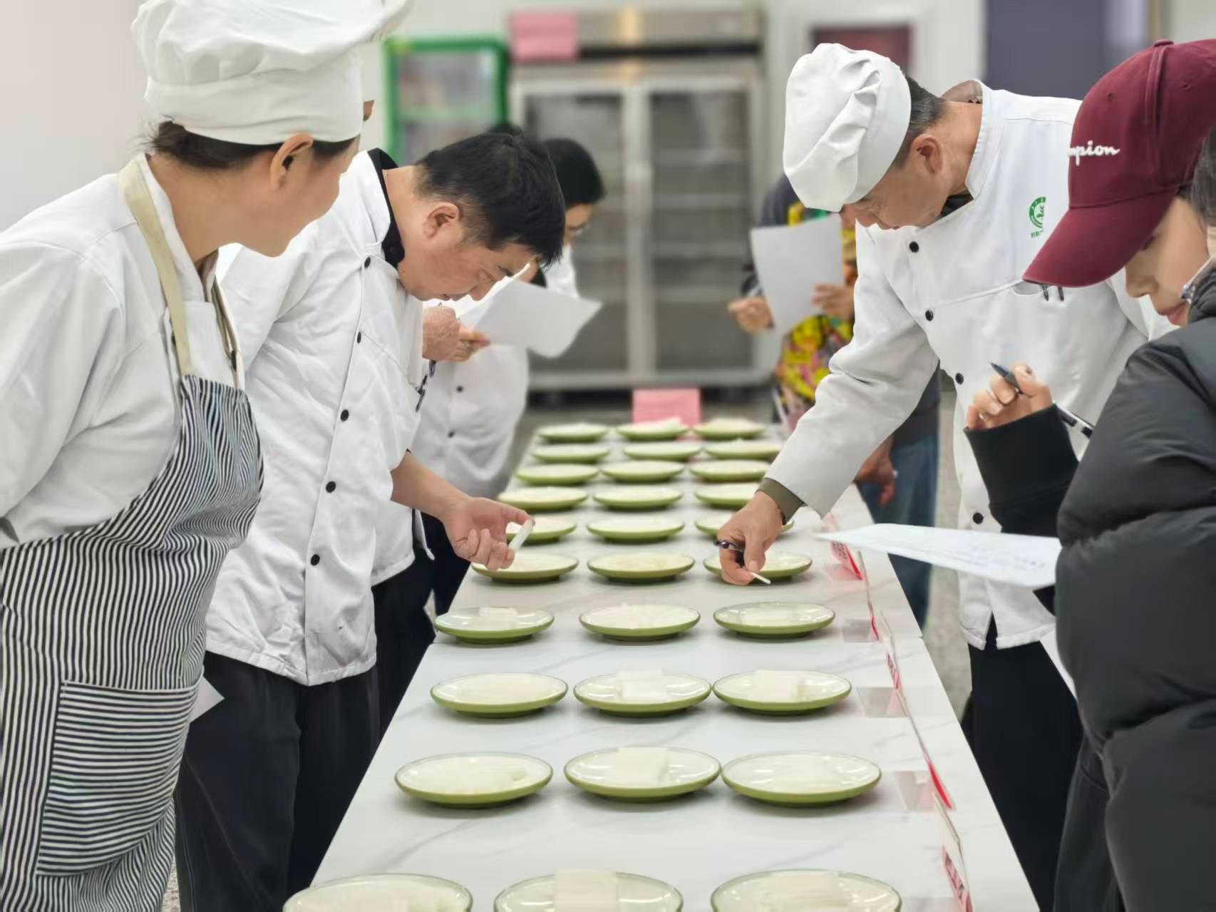 饮食管理服务中心的厨艺比武现场热火朝天,切配、清炒生菜、回锅肉、蒸花卷与烙饼五大项目轮番上演。切配区刀起刀落,炒锅前火光升腾,面点区巧手翻飞,师傅们亮出看家本领在竞技中交流提升。
